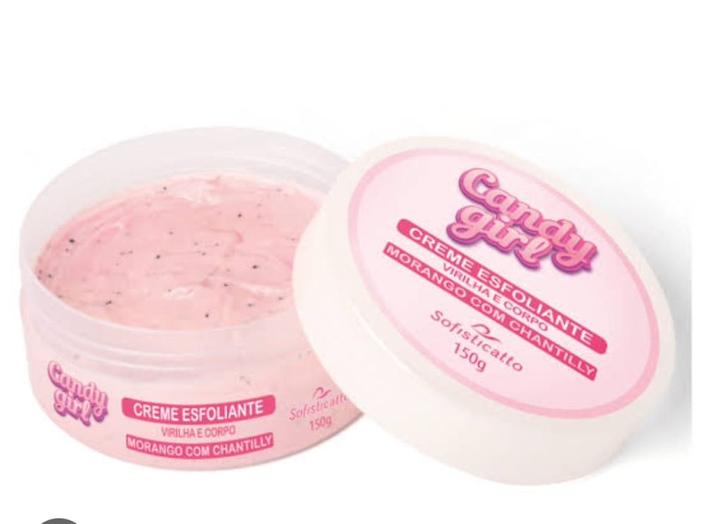 • Contém: 01 Creme Esfoliante Candy Girl 150g Sofisticatto; • Indicação: Corpo e virilha; • Função: Esfoliação, renovação celular e preparação da pele; • Fragrância: Morango com chantilly; • Textura: Cremosa com esferas biodegradáveis; • Uso: 2 a 3 vezes por semana; • Validade: Indeterminada.